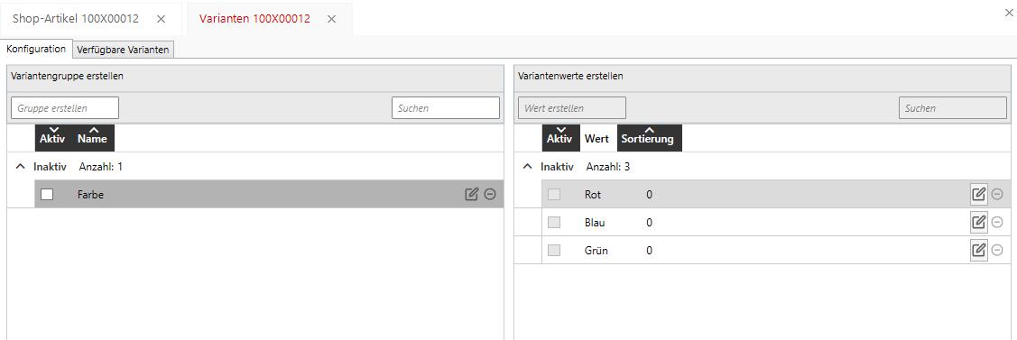 Nun können Sie im Reiter Konfiguration die gewünschten Gruppen und Werte anlegen.